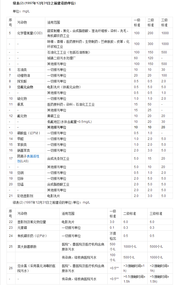 按照污水排放去向,分年限規(guī)定了69種水污染物最高允許排放濃度及部分行業(yè)最高允許排水量。本標準適用于現(xiàn)有單位水污染物的排放管理,以及建設(shè)項目的環(huán)境影響評價、建設(shè)項目環(huán)境保護設(shè)施設(shè)計、竣工驗收及其投產(chǎn)后的排放管理。
