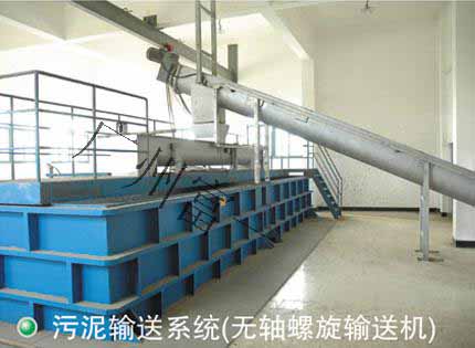 5、脫水污泥輸送系統(tǒng)(無(wú)軸螺旋輸送器):螺旋輸送機(jī)被廣泛應(yīng)用于廢水處理和工業(yè)生產(chǎn)等領(lǐng)域。螺旋輸送機(jī)被設(shè)計(jì)成無(wú)軸的,U形輸送槽是封閉的且上蓋可以打開(kāi),因此,特別適用于輸送有污染的、討厭氣味的、危險(xiǎn)的、架橋的以及清潔的物料。無(wú)軸螺旋輸送機(jī)是通過(guò)一個(gè)強(qiáng)力旋轉(zhuǎn)鋼質(zhì)螺旋來(lái)輸送物料,能有效傳送干燥的、潮濕的、有粘性的、粉末狀的、粗糙的物料。無(wú)軸螺旋的設(shè)計(jì)能有效地防止堵塞和纏繞物的影響。這種設(shè)計(jì)使輸送機(jī)更方便地輸送不同尺寸的物料。